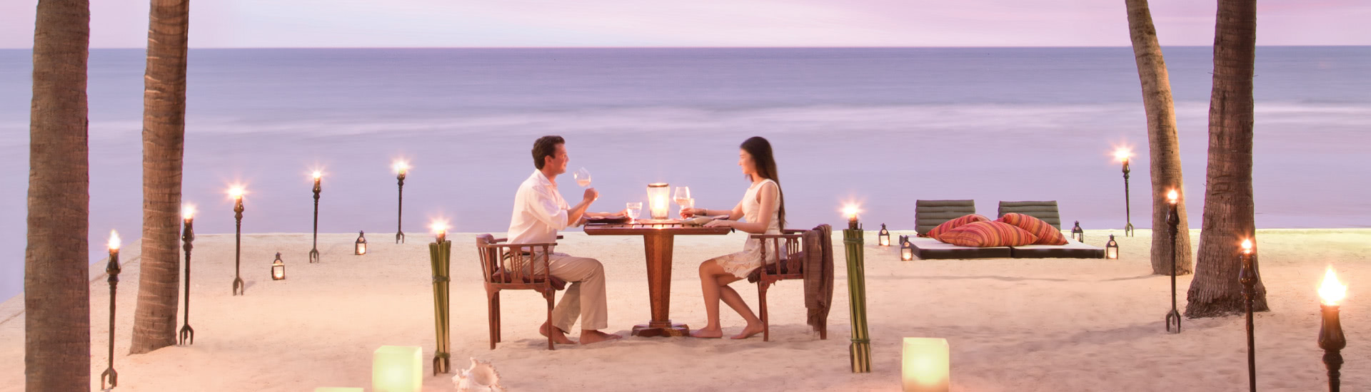 在点着灯笼的泻湖花园或华欣海滩上享用私人用餐。