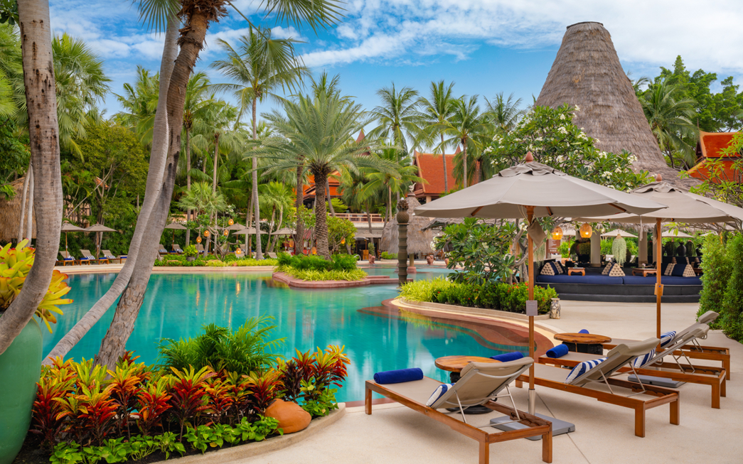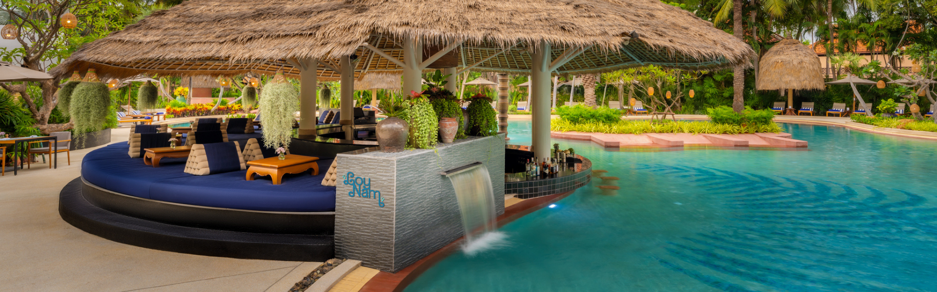 您可以在华欣郁郁葱葱的泳池酒吧放松身心。