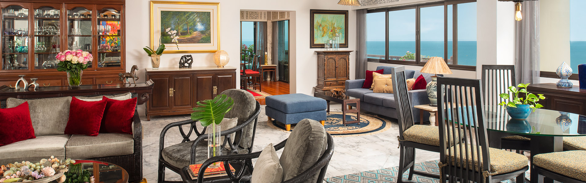 隐匿于著名酒店业主的家中。 安纳塔拉业主的私人公寓配备丰富的舒适设施,极尽奢华之感。 公寓位于八楼,居高临下,宽大的落地窗让环绕式海景震撼无比。 在装饰豪华的环境中放松身心,周围环绕着现代艺术品、精美古董和精美木雕的泰式装饰。 欣赏大理石和抛光木地板与绚丽地毯的绝佳搭配。 在微风习习的露台上享用早餐。 在海滩景观书房中打理业务。 在设备齐全的厨房准备丰盛的饭菜。 在开放式休息室和餐厅招待宾客。 举办优雅的户外晚会。