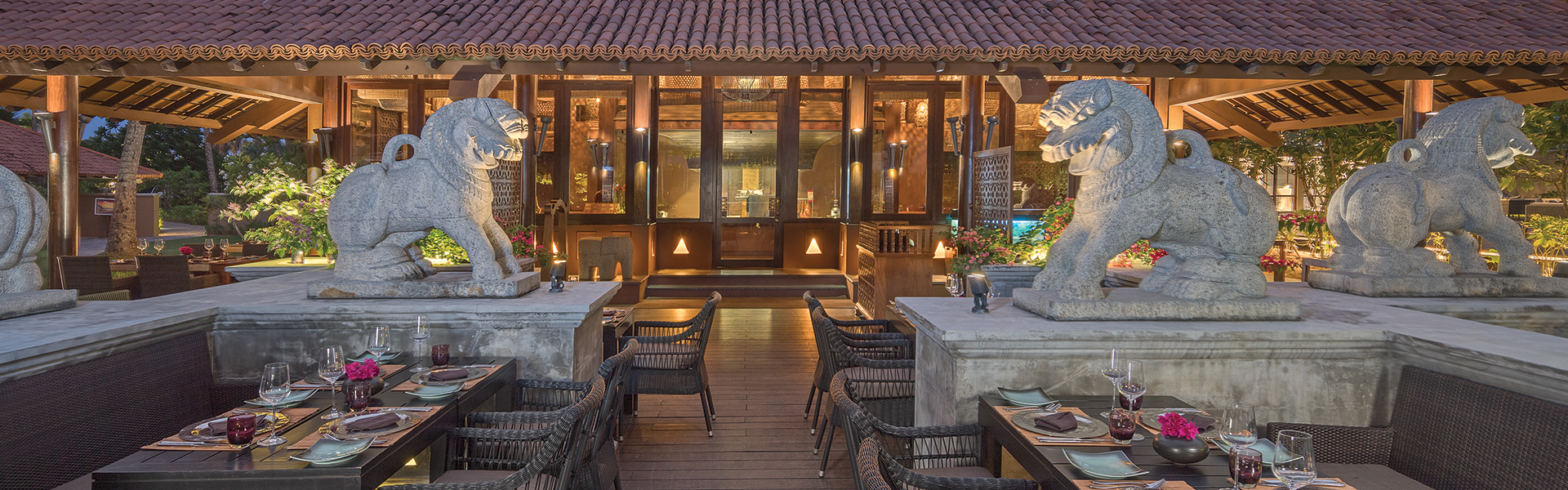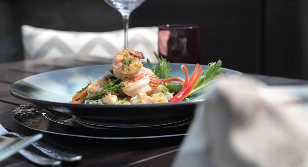 在河边美景映衬下品味亚洲精致美食