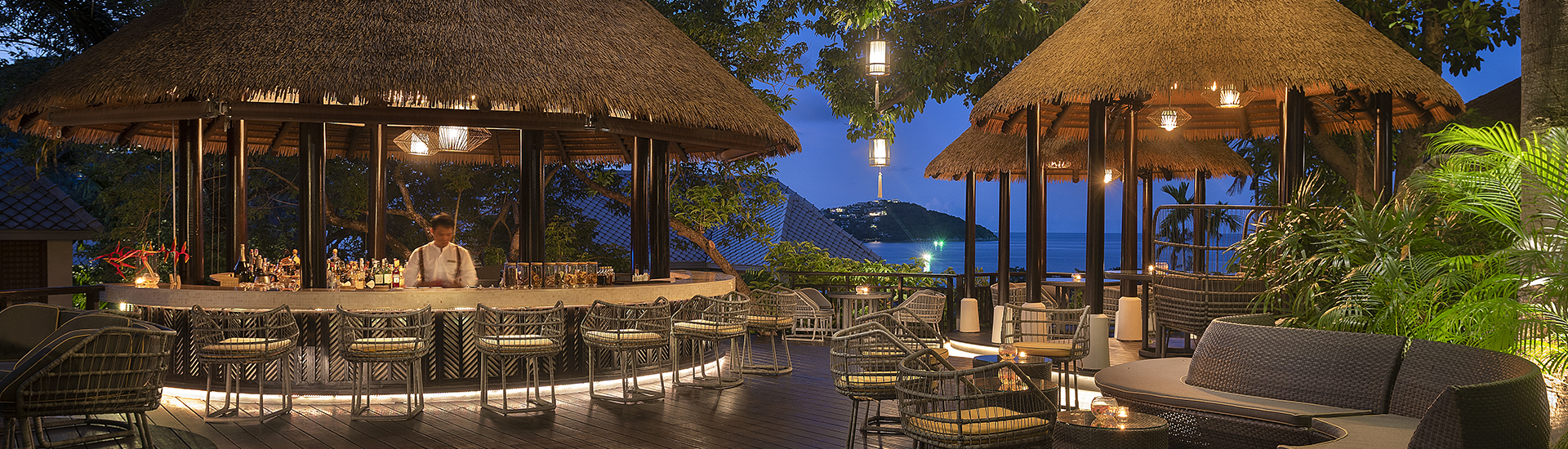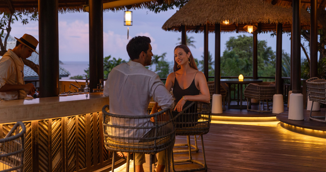燕语莺声酒廊坐落在一棵120年老树茂盛的树冠上,是苏梅岛热闹的露天酒吧,您可以一边鸟瞰风景,一边享用餐前开胃酒。 这些鸡尾酒均以当地鸟类命名,让您深入了解一个迷人的泰国传统 — 鸟儿歌唱比赛,吸引了来自该地区成千上万的观众。 当客人们坐下来,享用清爽的鸡尾酒,为日落干杯时,苏梅岛的鸟类会成群结队地飞来,用最优美的表演惊艳全场。 为了进一步让他的巧妙创作植根于当地自然,我们的常驻调酒师使用我们花园里的植物制作自己的苦味酒,并用度假酒店种植的水果和香草装饰他的鸡尾酒。