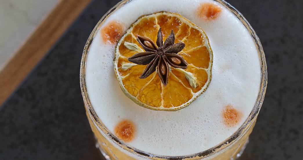 这款鸡尾酒的灵感来自亚洲红耳鹎的独特羽毛,在泰国南部举行的许多鸟类歌唱比赛中,红耳鹎都是毫无争议的明星。这款柔滑的波旁鸡尾酒以自制的苦味酒、苦杏酒和蛋清为基础,再加入少许自制的肉桂糖浆,为经典饮品增添一抹新花样。