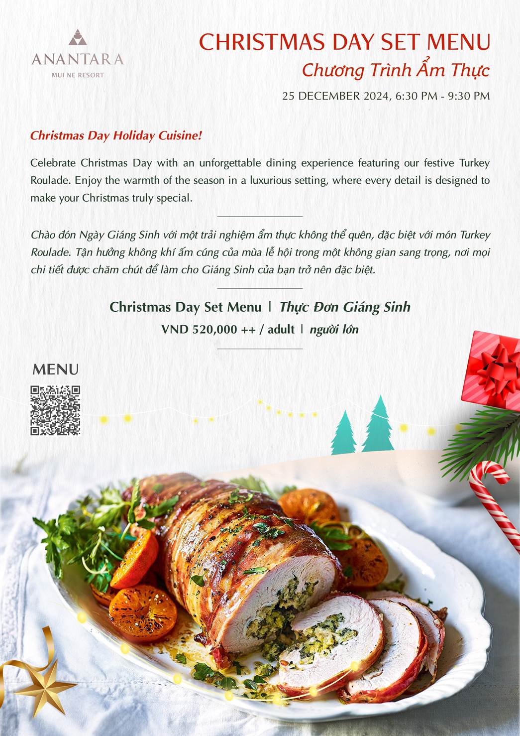 | Price: | VND 2,400,000 per guest (includes festive welcome drink) |