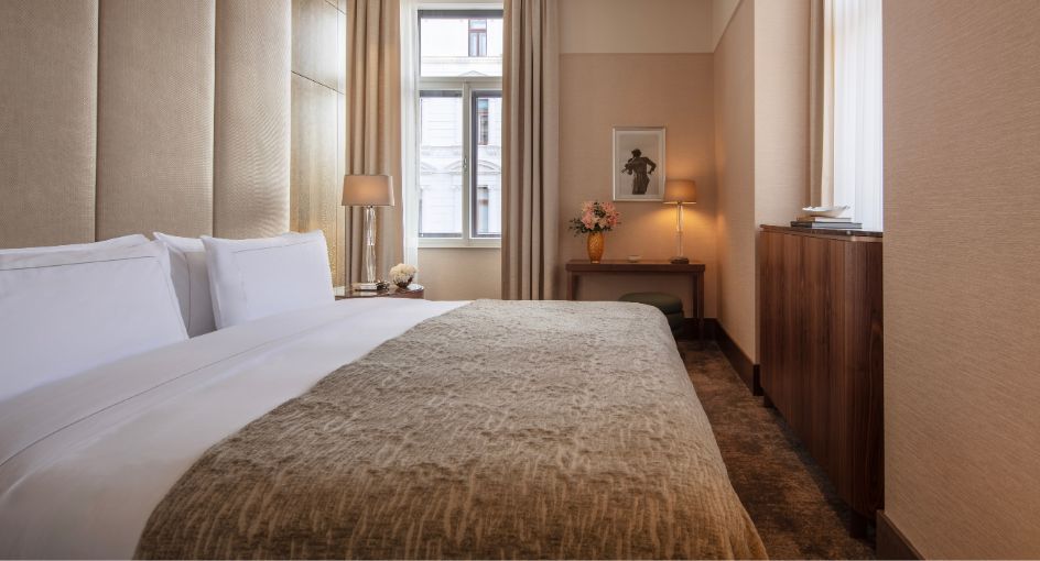 步入一个无与伦比的奢华世界。高级套房设计独特,空间宽敞,灵感源自这座宫殿的璀璨历史。在沐浴着明媚阳光的套房内,维也纳式的优雅与对细节的至臻追求完美融合。独立起居室可以满足多种需求,无论是休闲放松,还是商务办公都十分方便。