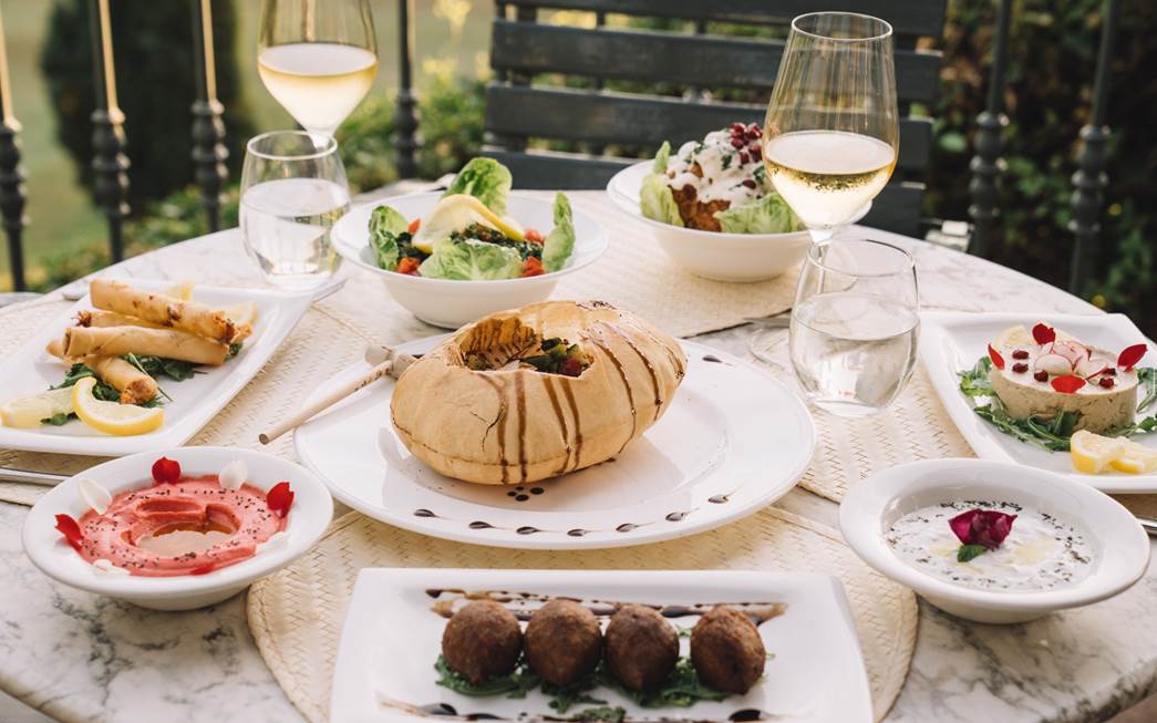 探索迷人的中东风味。从新鲜的塔布勒沙拉(tabbouleh)和法图什沙拉(fattoush)开始,搭配完美的皮塔饼。品尝正宗的鹰嘴豆泥(hummus)配甜菜根或法拉费(falafel),还有调味完美的羊肉串或配无花果酱的烤哈罗米奶酪(halloumi)。最后以巴克拉瓦(baklawa)和库纳法(kunafah)等甜点收尾。您的黎巴嫩美食之夜将伴随着醇美饮品与诱人水烟(shisha),为您缔造一段难忘的味觉盛宴。